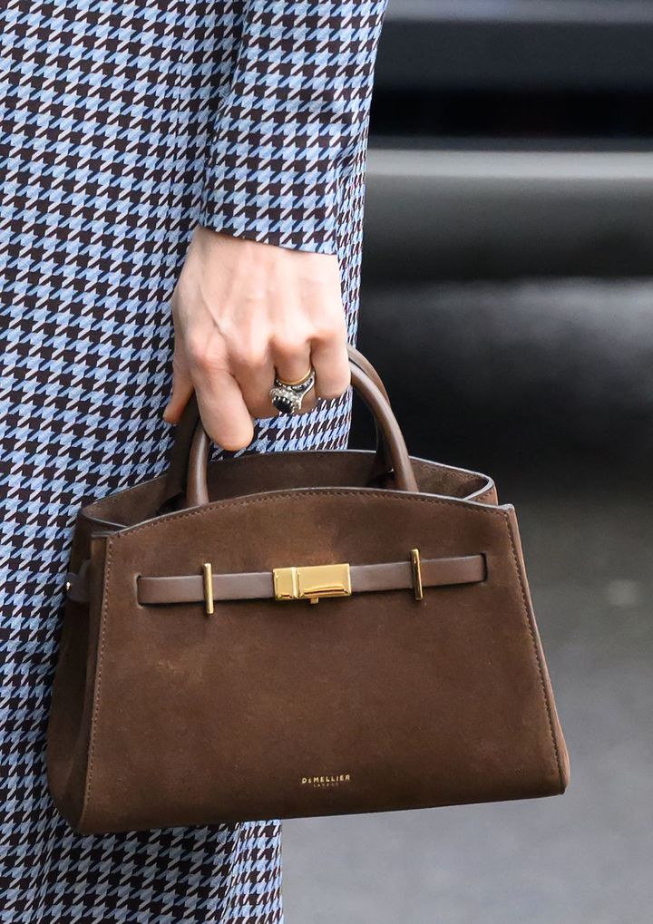 キャサリン妃が公務で手にしているバッグは、彼女の着こなしに寄り添うエレガンスが魅力。イギリス発のレザーバッグブランド、デメリエ(DeMellier)の「ハドソン」は、ミニサイズながらも収納力があり、ブランドを代表するベストセラーアイテムだ。キャサリン妃が選んだブラウンのスエードタイプは上品さが際立ち、会食やパーティー、フォーマルなシーンにもピッタリ。サイドパネルによって容量を変えることができ、取り外し可能なショルダーストラップ付きだ。