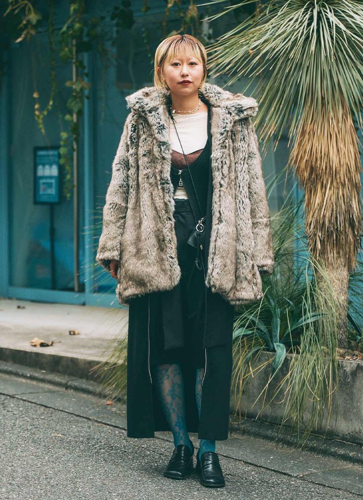 Instagram:@aaamnynカットソーにビスチェとロングジャケットを重ねて、仕上げに『フミエタナカ』のリッチなファーアウターをオン。ブラックやベージュなどの落ち着いたカラーでまとめつつ、足元は深みのあるアクアマリンのレースタイツをアクセントにしたシャレ感漂う装い。立体感と遊び心が光るムードのある着こなしが素敵♡item▼