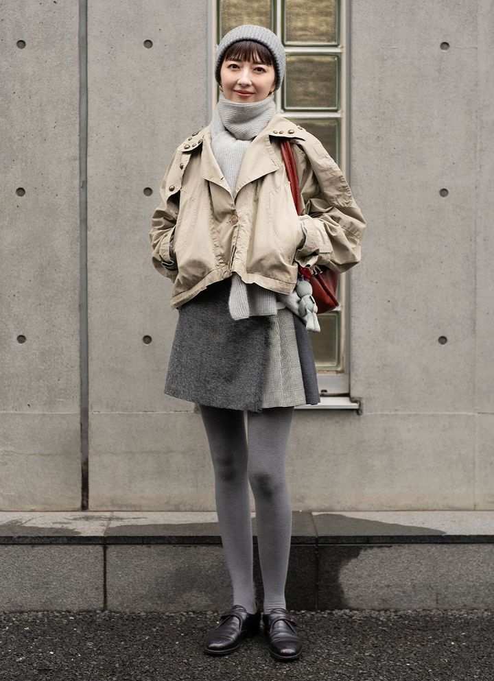 Instagram:@mario.yog甘く見えがちなプリーツミニも、グレー×ベージュの淡色トーンでまとめれば大人っぽく上品なムードにシフト。ニット帽、タイツ、マフラーなど、ポイントになる小物をすべてグレーにすることで、ワントーンの奥行きと暖かさを両立。控えめカラーなのに洗練度抜群で、ミニ丈を大人っぽく取り入れたタイツコーデがお見事。item▼