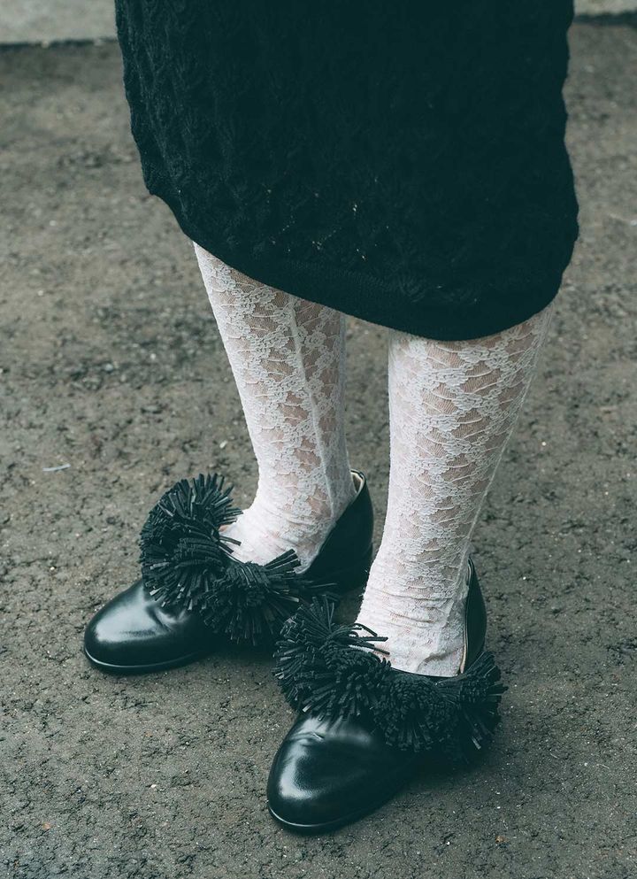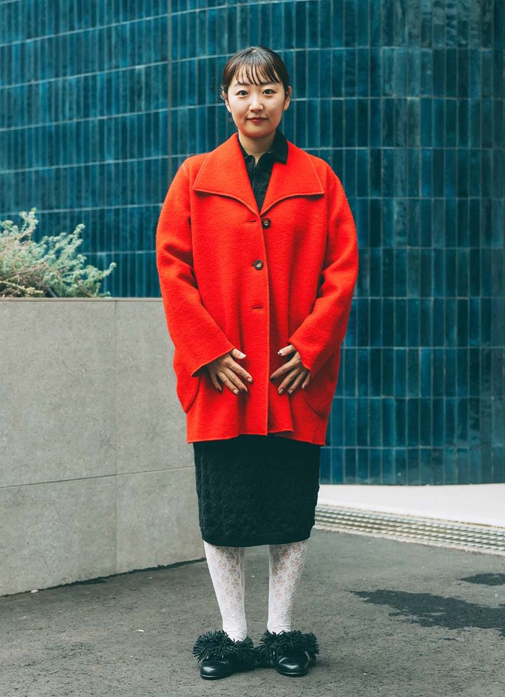 Instagram:@______zun抜群の存在感を放つのは、鮮やかな赤アウターとお花のようなフリンジが特別感たっぷりなスポックシューズ。モノトーン×レッドのコントラストで、モードな雰囲気に仕上げたベクト理沙さん。遊び心たっぷりなシューズに、白の花柄レースタイツを合わせてエッジの効いた組み合わせがおしゃれ上級者。item▼
