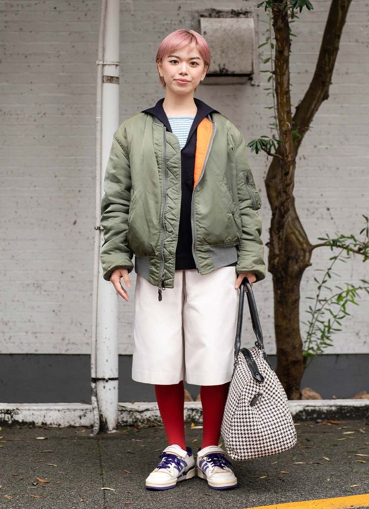 Instagram:@lunatindaoホワイトボトムに鮮やかな赤タイツを効かせた、クリーンでフレッシュな装い。防寒力抜群でメンズライクなMA-1を羽織りつつ、足元は『アディダス』のフォーラム 84 で、ほどよくヴィンテージ感漂うこなれた冬コーデに。さらに、素敵なピンクヘアも着こなしのアクセントになり、冬の街中でも目を引く華やかさ。item▼