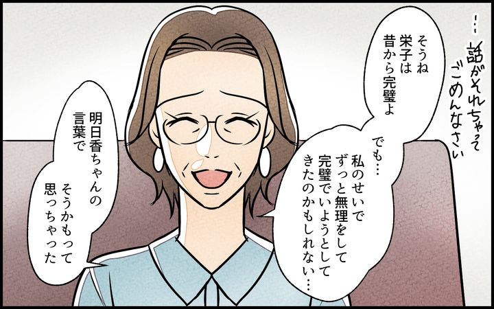 そんなときに実の母と話したことで、明日香は「義母は実は完璧超人なんかじゃないのかもしれない」と感じ始めるが……。
