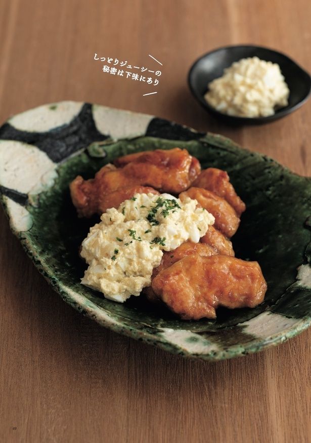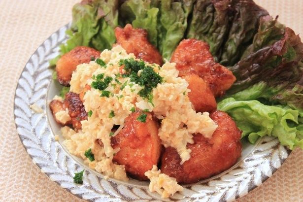水切りした豆腐とらっきょうを使うことで水っぽくならず、脂質やカロリーを抑えられるため、たっぷりかけても罪悪感なし! マヨネーズを一切使っていないのにまるでタルタルソースのよう。らっきょうの食感も楽しい。また、甘酢とタルタルに無限つゆを使っていることで、頬張るとふわっと出汁が香る。無限つゆは唐揚げの下味として使うこともできる。