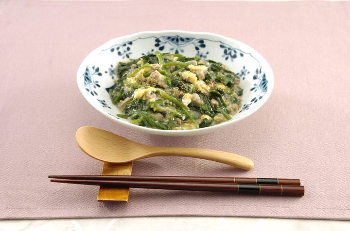 テーマは「師走の簡単ごはん」。フライパンひとつでサッとできる、栄養満点のおかず「ほうれん草のそぼろ卵あん」を辻調理師専門学校の簾達也先生から教わった。