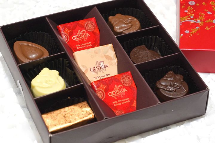 「ホワイト ラズベリーオレンジガナッシュ」や「ミルク ヘーゼルナッツプラリネ」など、このコレクションだけで楽しめる限定チョコレートのほか、「アモンド マルキーズ」や「レディ ノア II」などゴディバの定番チョコレートも入っているので、ゴディバファンの人はもちろん、ゴディバ初心者の方にもおすすめのアソートメントです。おせちなど和食が続くお正月の食後に、「何か少しつまみたい」という時におすすめです!