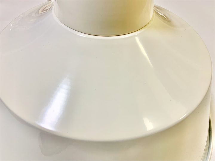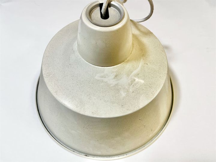 オキシクリーンは金属NGですが、このペンダントライトは琺瑯(ほうろう)製なので、使用OK。さっそくオキシ溶液を含ませたクロスで拭いていきましょう。