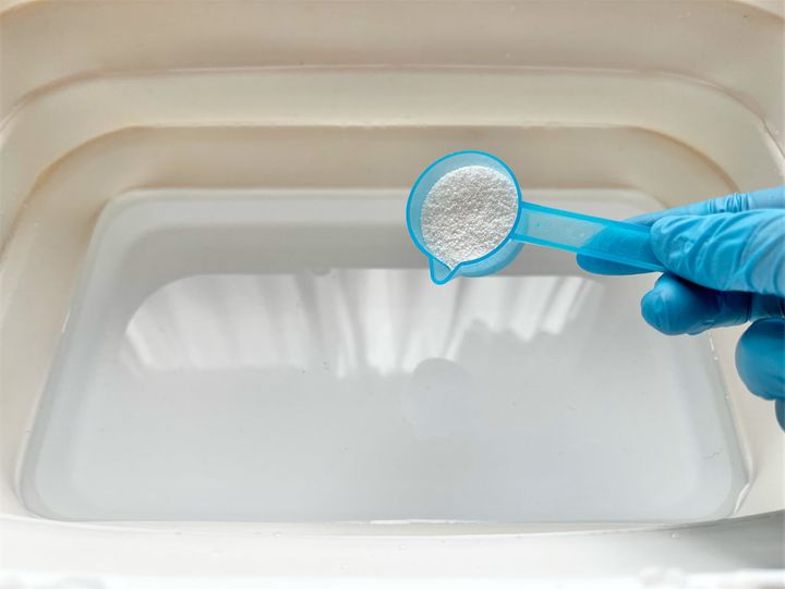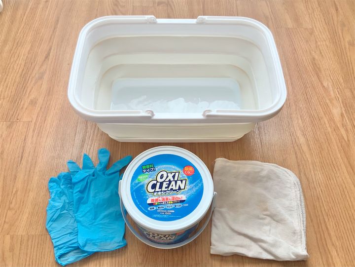 ・オキシクリーンは40〜60℃で最も効果を発揮します。温度が冷たいとオキシクリーンが溶けきらず、熱すぎると効果が出る時間が短くなってしまいます。より高い効果を発揮するためにも、適温のお湯で十分溶かしてから使用してください。