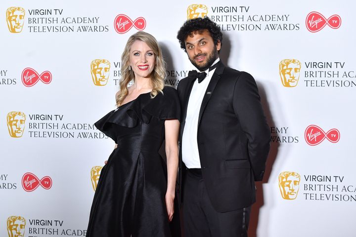 左から、英国のコメディアンであるレイチェル・パリスとニッシュ・クマール。写真は2018年にロイヤル・フェスティバル・ホールで開催された「BAFTA TV Awards」の様子。 Samir Hussein / Getty Images