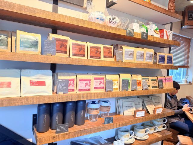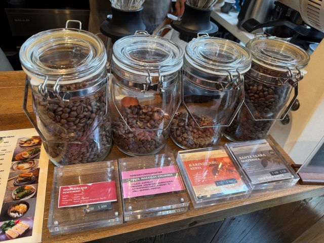 お店を入ってすぐの場所にはコーヒー豆がずらり。今日のコーヒーはコロンビアコーヒーでした。