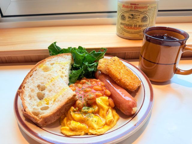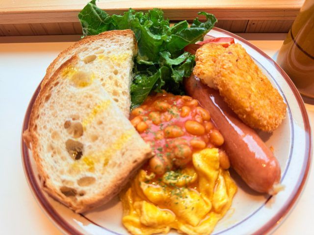 パンがふわふわで味わいがあり、とてもおいしくて、ポークビーンズやとろっとろのスクランブルエッグと相性抜群。幸せな気持ちに。