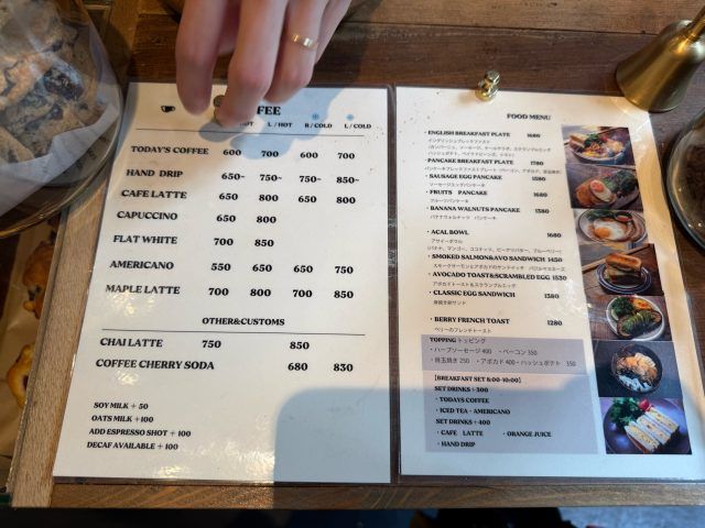 朝からメニュー色々。パンケーキもとてもおいしそうなので今度食べに来ようと心に決めて、イングリッシュブレックファーストをオーダー。