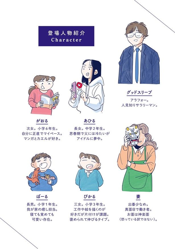 引っ込み思案なサラリーマン・グッドスリープさんは、4児の父。会社では人付き合い、家では育児に奮闘中。完璧とは程遠い自分に悩み、逃げ出したくなる毎日。でも子どもたちの無邪気な笑顔や、小さな寝息が、いつだって明日への活力をくれる!
