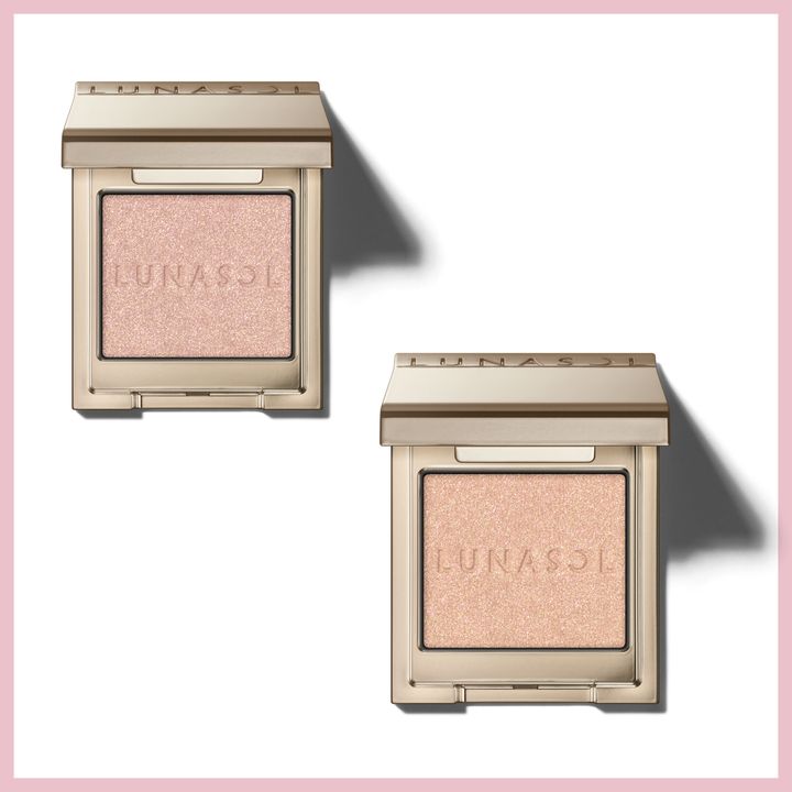ブルーとピンクの光が、唯一無二の光沢を肌にもたらすハイライター。一歩先を行くモードな透明感をまといたい日に。