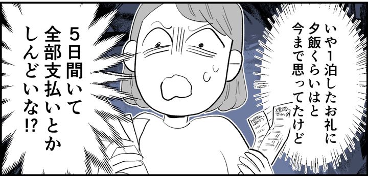<義実家5泊はキツイって…>気づかい皆無!シャワーNG・食事は各自・外食費用は…【まんが】