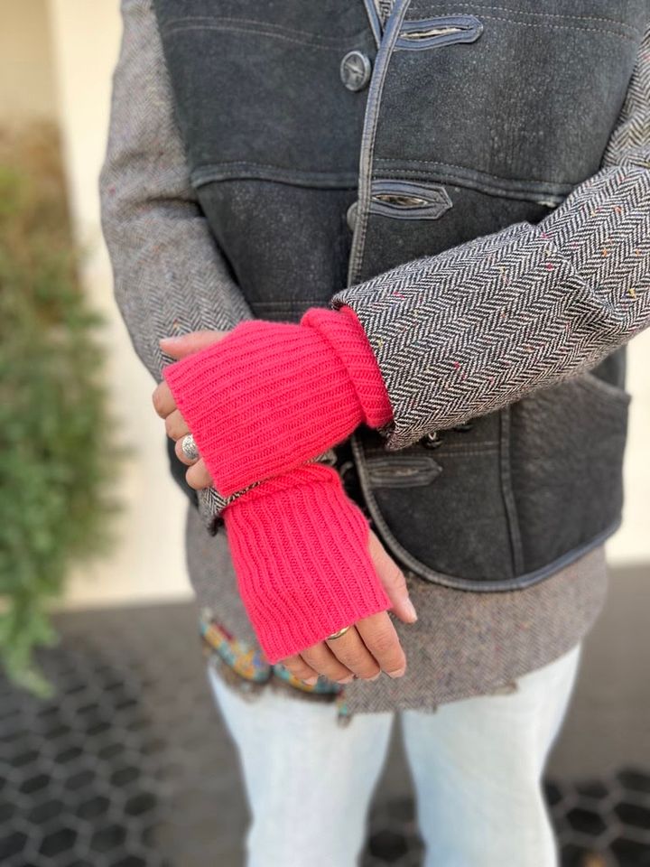 ニットグローブはヴィヴィッドなピンクをチョイス。差し色になるのはもちろん、お茶目なアクセントにもなっています