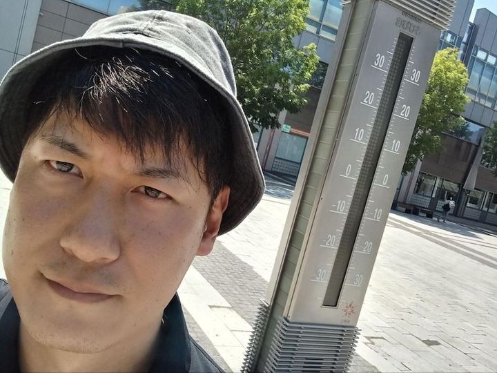 2025年7月24日 帯広駅前の温度計(筆者撮影)