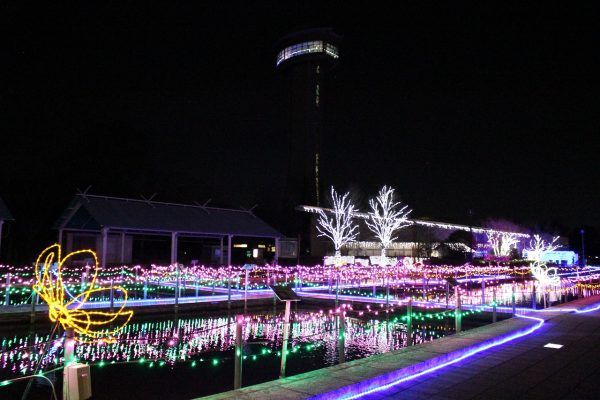 行田市の古代蓮の里で、2026年2/15(日)まで、イルミネーションを点灯(16:30~21:00)。 冬の古代蓮の里を彩るイルミネーションと、高さ50mの行田タワーから360度夜景が楽しめます。