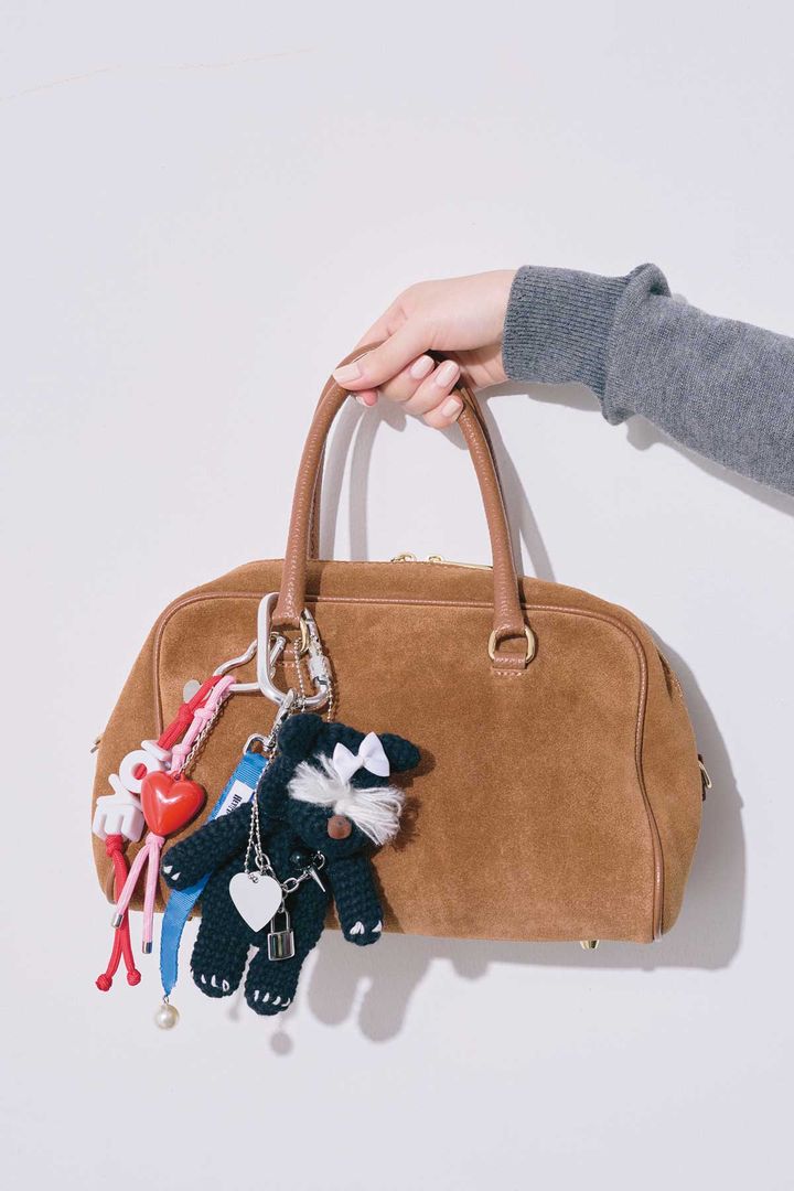 10.秋にぴったりのニット素材など、複数のチャームがジャラッとMIX。これひとつでバッグコーデがキマって便利。