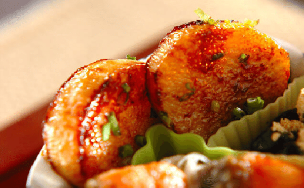 1、フライパンにオリーブ油を中火で熱し、長芋を焼き色がつくまでじっくり焼く。