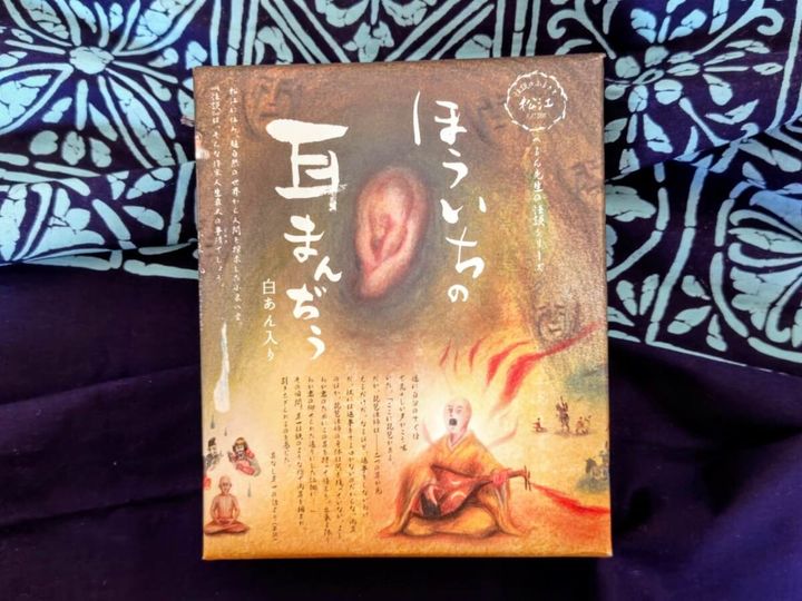 そんな、手に汗握る怪談物語をお菓子にした「ほういちの耳まんぢう」。パッケージの挿絵は写実的な“耳”を真ん中に、芳一、壇ノ浦の戦い、亡霊たちの姿が描かれ、どよ~んと恐ろし気な空気が伝わってきます!