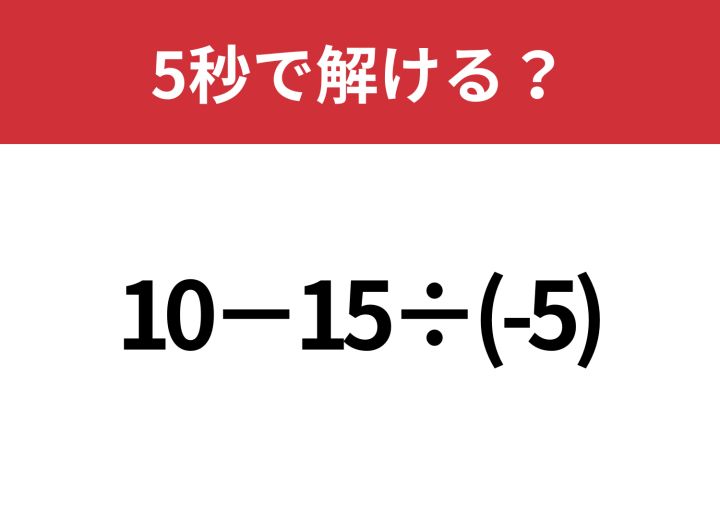 意外と正解率が低いかも!?「10−15÷(-5)」5秒で解ける?