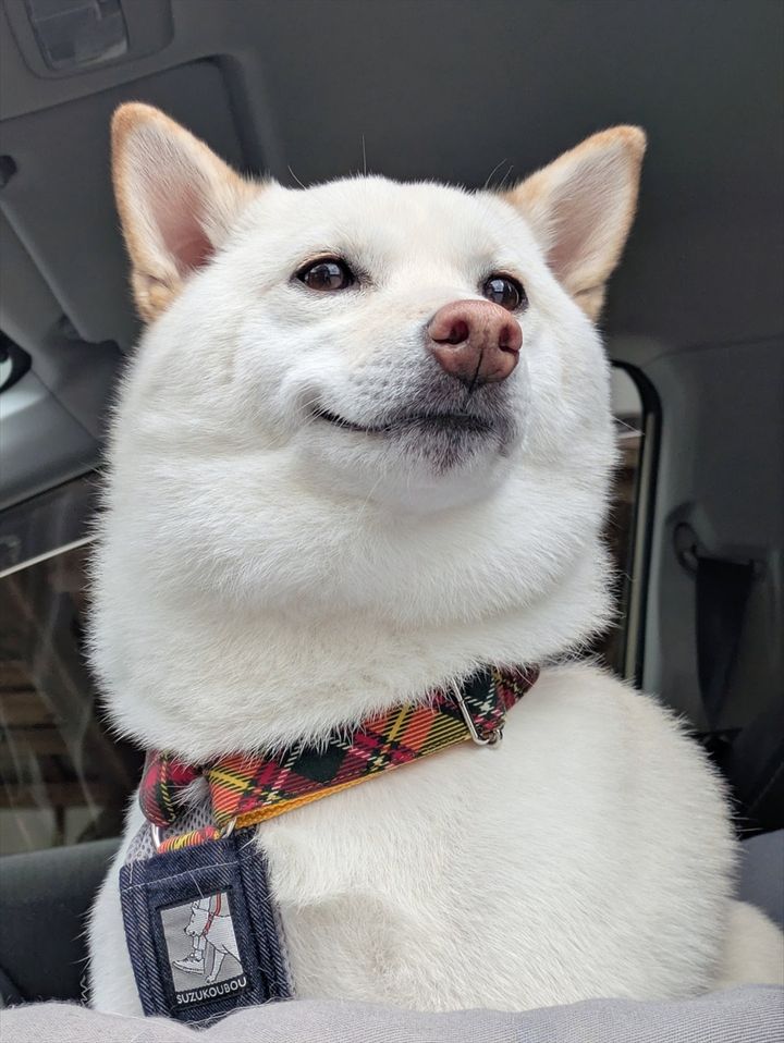 こちらの「やり遂げた」と言わんばかりの誇らしげな表情を見せてくれているのは、白柴の『まんまる』くん。 2025年最後のトリミングを終えた際の1枚とのことで、キリっとした表情同様、さっぱりとしていて毛並みもキレイです。 凛々しくて絵になる表情を浮かべているのはそもれあってのことなのでしょうね。