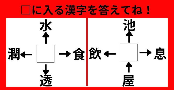 【漢字パズル】□水、□食、□透、□潤 □に入る漢字は…?