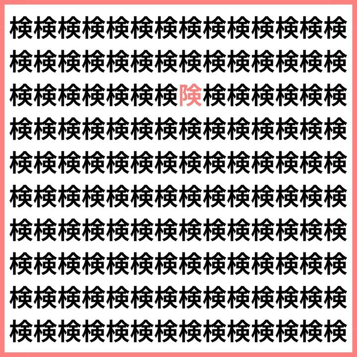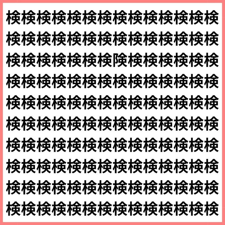 たくさんの「検」の中に、1文字だけ違う漢字が混ざっています。