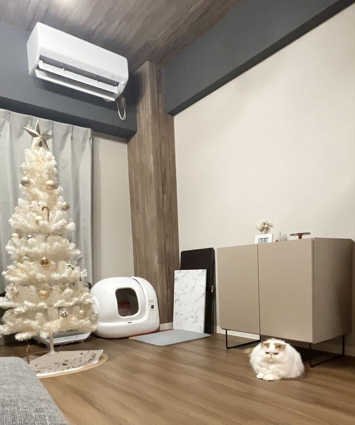 床の上に座っているこの子は、エキゾチックロングヘアの『もけちゃん』。 フローリングの上にいるので、ひんやりしているのかと思いきや、実はそこは暖房の風がくるところ。 「ちゃんと暖かい所をわかって」陣取っていたんですね!