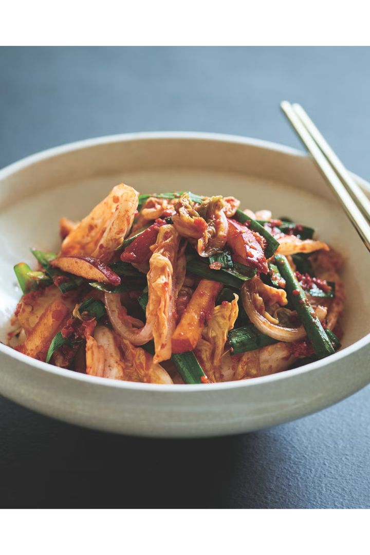 箸休めやおつまみにもぴったりな、うま辛いコッチョリレシピ。りんごや白菜のやさしい甘みがピリ辛いキムチと合わさることで、やみつきのおいしさに。キムチのもとさえ作っておけば、さっと和えてすぐに食卓に出せるのがうれしい。
