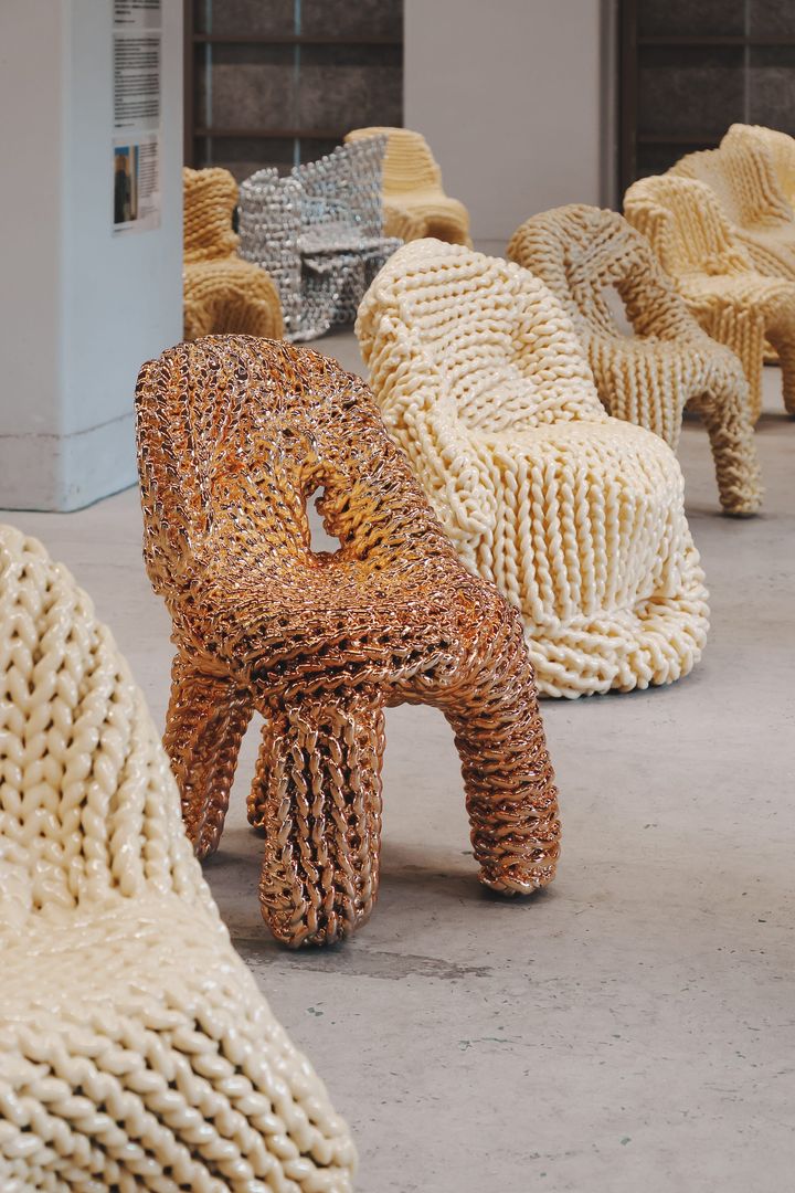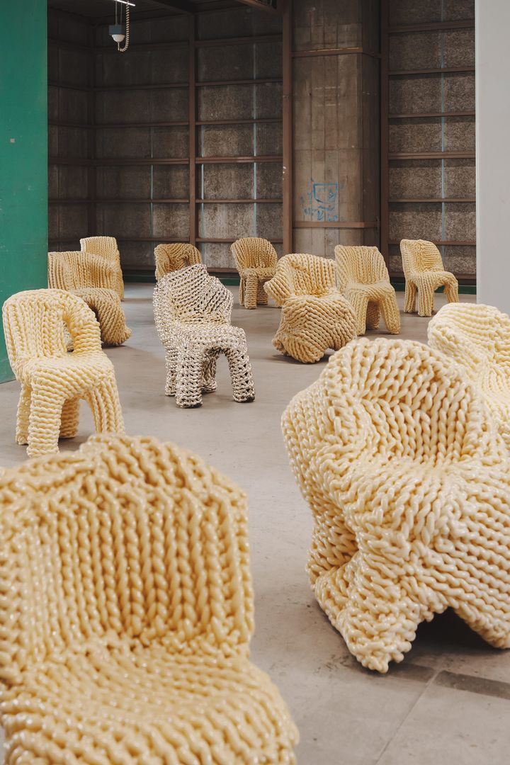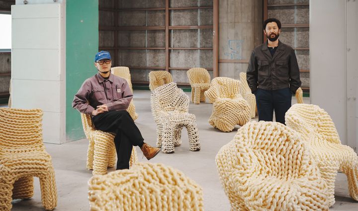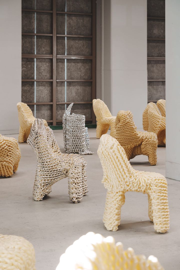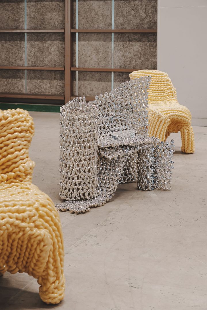 会場では、韓国のアップサイクルブランド「フォーマット(FORMAT)」とのコラボレーションによる、リサイクルアルミ製のシリーズ“O SERIES”のスツールや椅子、ベンチも同時に展示。両シリーズ合わせて約100点もの作品が並ぶ。