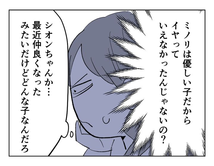 ユイさん、わが子かわいさにシオンちゃんを「悪い子」認定しました。そしてシールを搾取され続ける未来を想像しています。募るモヤモヤ、しかし相手はわが子が慕うお友だち。注意したくても注意できない……。母の胸の内は複雑です。