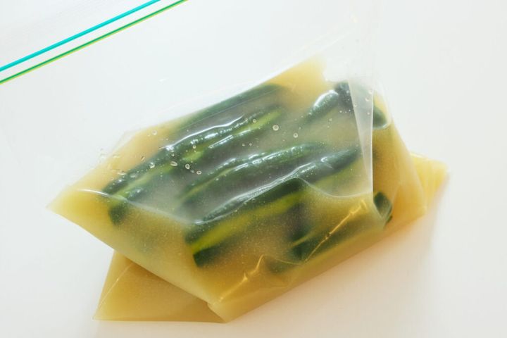 ②空気を軽く抜いて冷蔵庫で保管し、2日ほど漬けて完成。