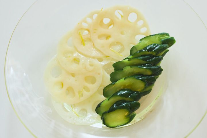 お漬物2種(胡瓜の辛子漬け & 蓮根の柚子酢漬け)