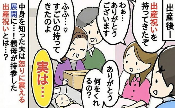 長男を出産した病院に、義両親がお祝いを持ってやってきました。手に持っていたのは大きな段ボール箱。しかし中身を見て驚愕しました。