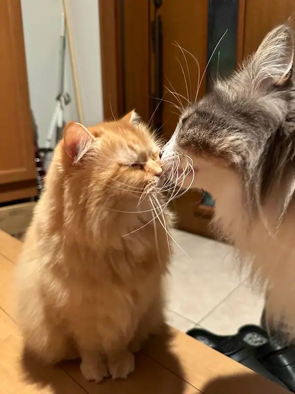 そんな姿を見かねたのか、ノルウェージャンフォレストキャットのレイくんが、そばで慰めていたといいます。