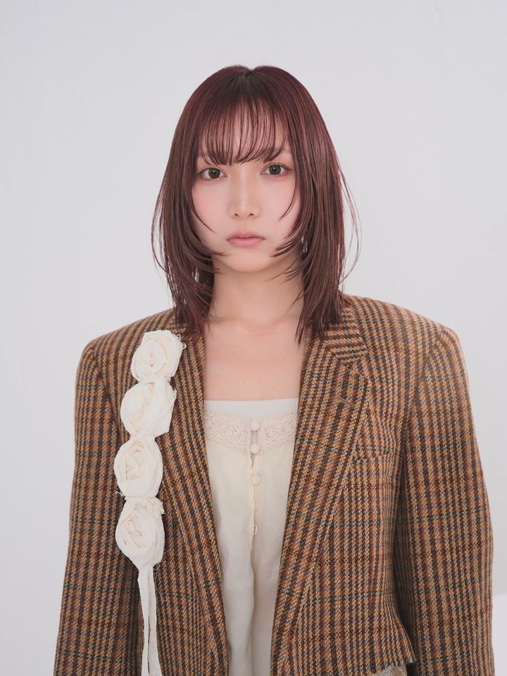 コンサバな雰囲気になりがちなミディアムヘアは、こだわりのカラーで一気に今っぽ指数が上昇↑ ブリーチを2回したベースに、根元7㎝をレッド、中間と毛先はブラウンベージュでカラー。さりげなく柔らかなグラデーションにすることで、尖りすぎないけど主張のある大人な女子に。