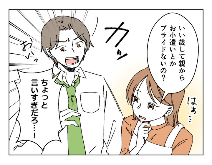 夫婦のお小遣い事情は、家庭によってさまざまです。毎月決まった額をお小遣いにするご家庭もあれば、収入から一定額を家計に入れ、残りを自由に使うというご家庭もあるでしょう。お小遣いのかたちは本当にそれぞれ。今回は、そんな「夫婦のお小遣い」をめぐるお話です。主人公は、夫がお小遣いとは別に受けている“ある援助”がどうしても気に入らないようで……!?