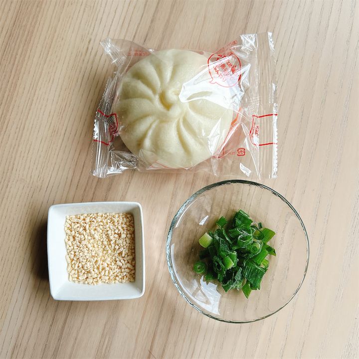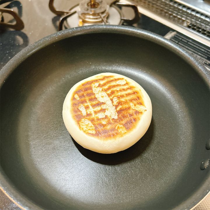 温めた肉まんの両面に、さっと焼き目をつけるところがニクイ演出です。さっそく作っていきましょう。