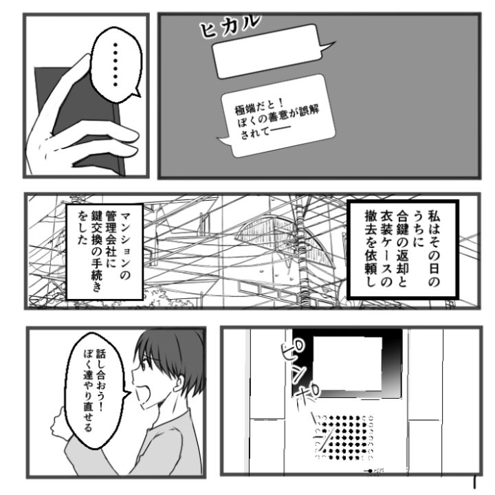 恋人の何でもかんでもを管理したかった彼氏。自分が間違っていたことは認めずやり直しを要求してきた厚顔さに呆れる主人公でした。
