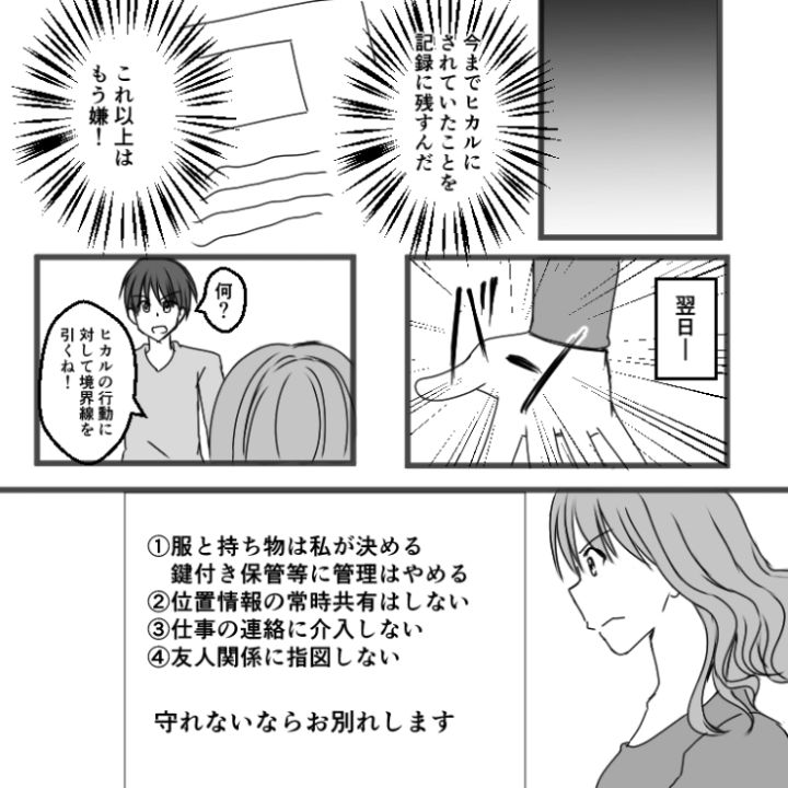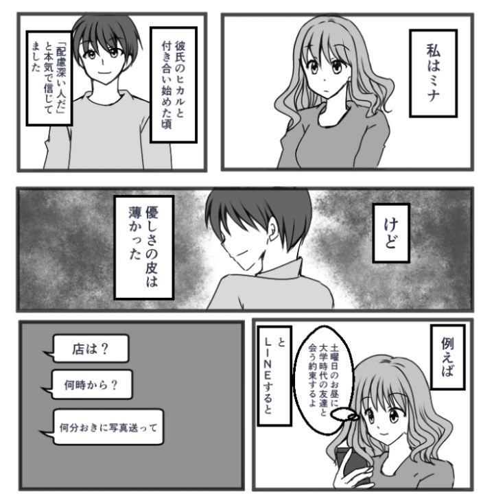 衝撃のエピソードを漫画化!今回は着るものや食べるもの、スマホの利用時間まで管理してくる過度な束縛彼氏のお話をご紹介します。