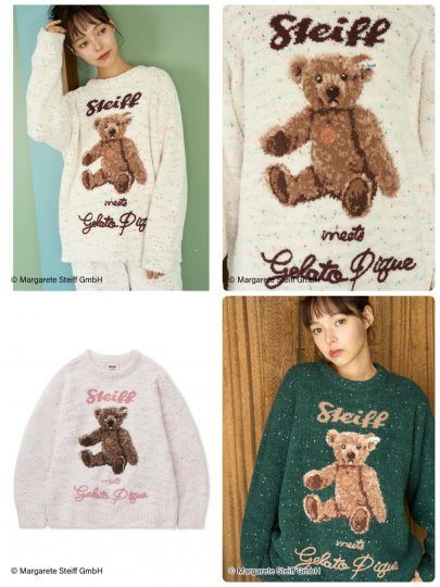 ほどよい弾力感のもっちりニット。テディベアで有名なSteiffとgelato piqueがお届けするコラボレーション。クリーム、ピンク、グリーンの3色をご用意しています。同シリーズのパンツやソックスなどもあるのでシリーズで集めるのも楽しそう♡