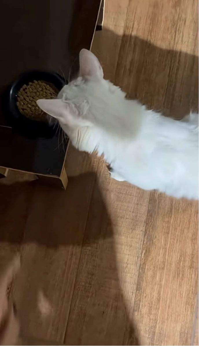 そして最後にネコの順番が回ってきました。 しっかり「待て」を頑張った分、きっと特別おいしいご飯だったでしょうね!