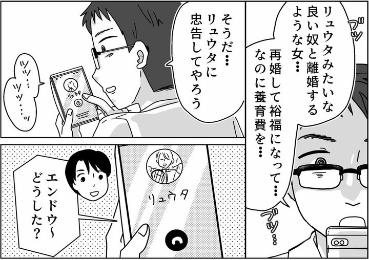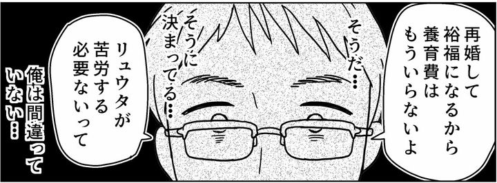 「再婚して裕福になるに決まっている」。そう言い続けていると、だんだんとそれが真実のような気がしてきた。根拠のない思い込みを確信に変えて、俺はリュウタに連絡した。俺が自信満々で話すと、リュウタもだんだんとその気になってきたようだった。「そうだよ、養育費はもういらないって。リュウタが苦労する必要ないよ」