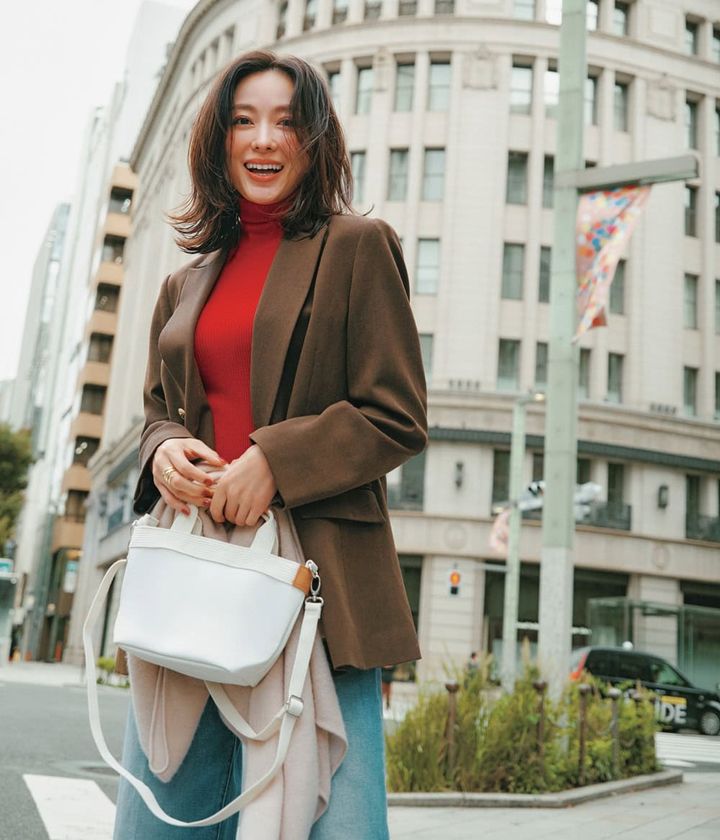 ¥9,900(ウイトート)ジャケット¥31,900(アルページュストーリー/アルページュストーリー プレスルーム)タートルニット¥22,000(ツル バイ マリコ オイカワ)パンツ¥25,300(ローラス/ジャック・オブ・オール・トレーズ プレスルーム)ストール¥41,800(エストネーション)リング¥13,200〈ワンエーアールバイウノアエレ〉(ウノアエレ ジャパン)