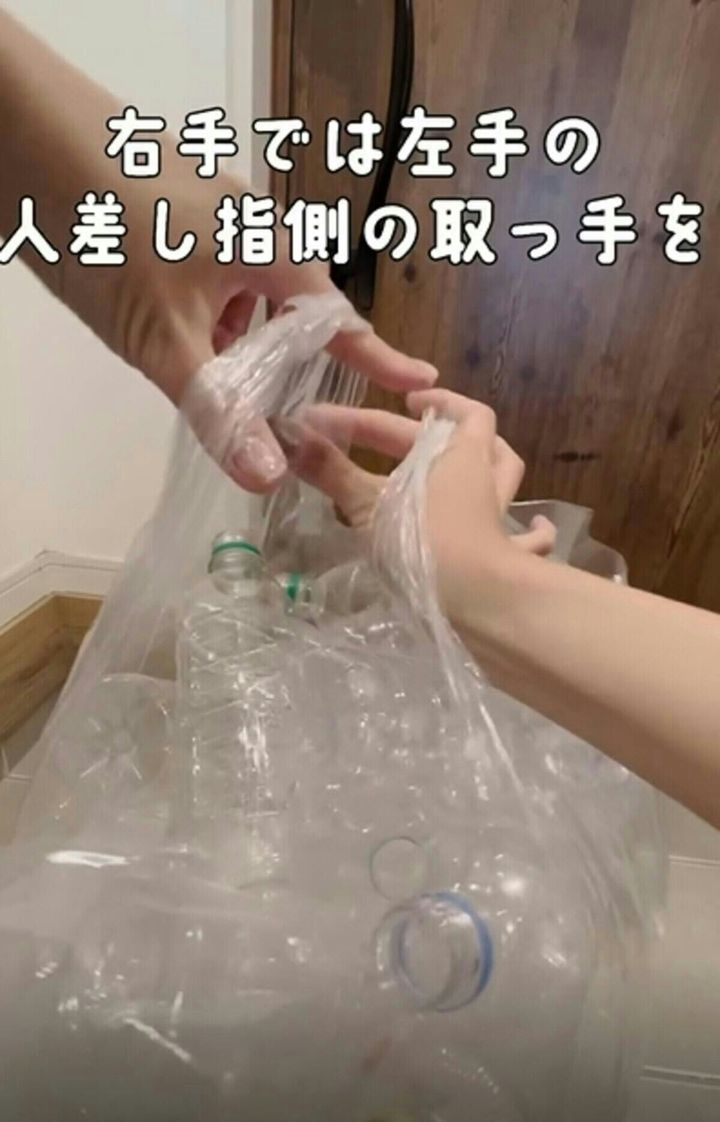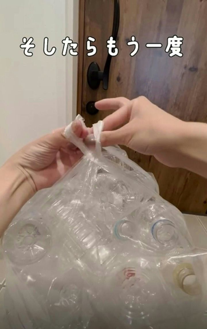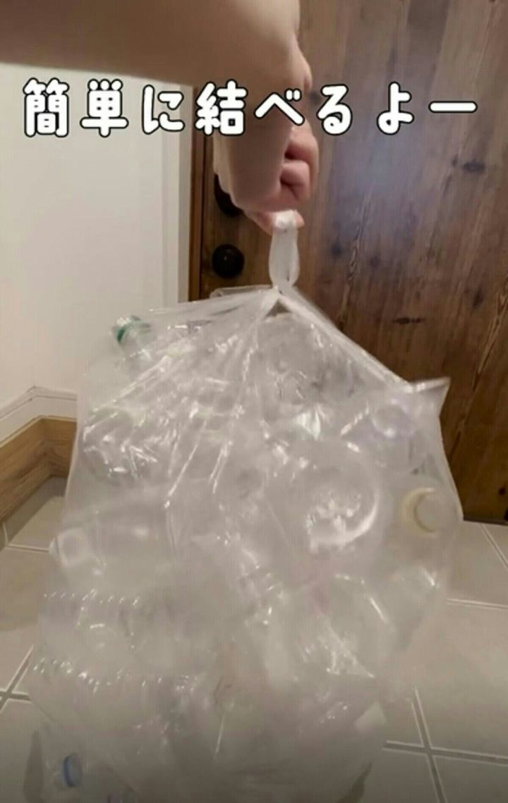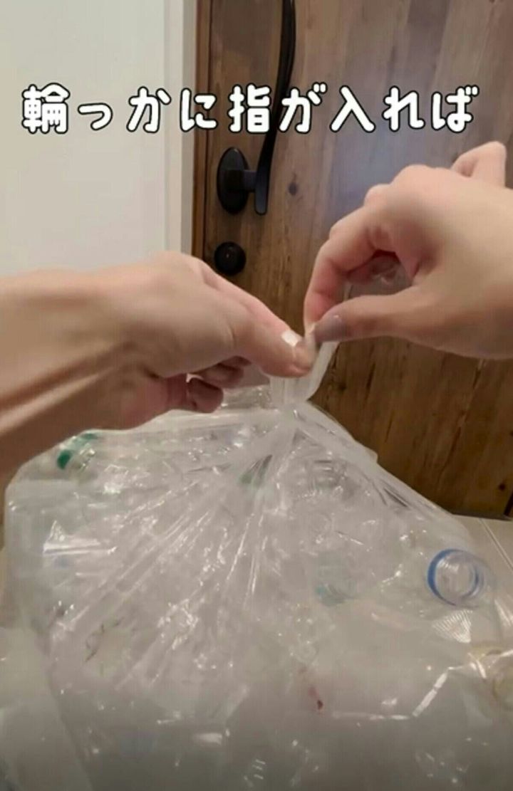 ゴミ袋、詰め過ぎても大丈夫!【ライフハック】パンパンの袋の口をさっと結ぶ裏技
