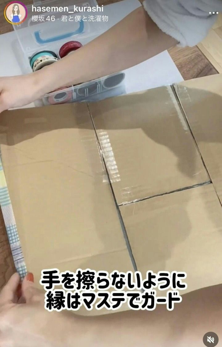 5.最後に、段ボールの縁をマスキングテープでガードする
