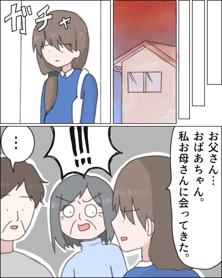お母さんと別れ家に帰った私は、「お父さん・・おばあちゃん。私お母さんに会ってきた」と言うと、義母は驚き、パパは無言になりました。