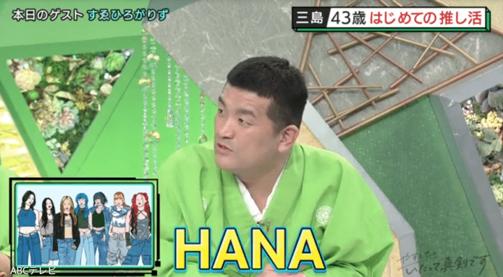 「推し活を43歳にして初めてしている」と切り出したのは、お笑いコンビすゑひろがりずの三島達矢。三島が「今す~ごい推している」のは、『NHK紅白歌合戦』への初出場が決まったことで話題のHANAだ。