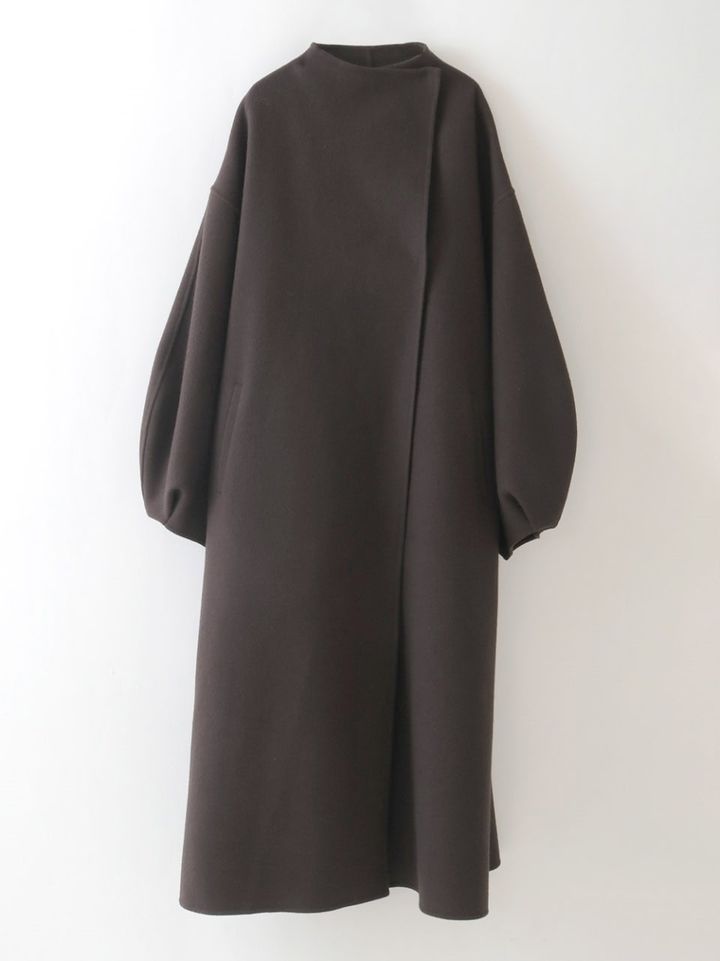 「マキシ丈のコートは、動くたびに生まれるドレープが表情豊かでラフさとヌケ感が気にいっています。襟のスナップを留めるとケープのような着こなしもできて、表情の違いを楽しめるところも◎」ハーのコートは本人私物